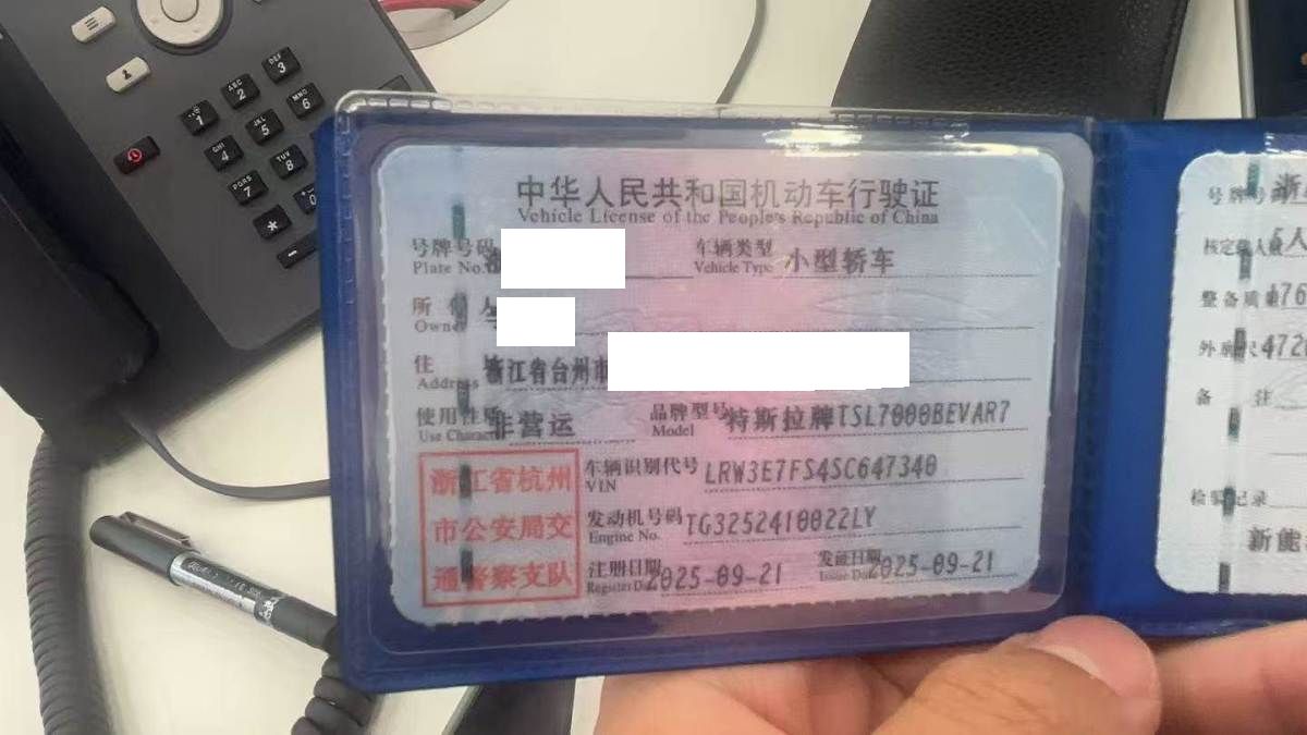 初次登记日期 2025-09-21 车辆名称 特斯拉 Model