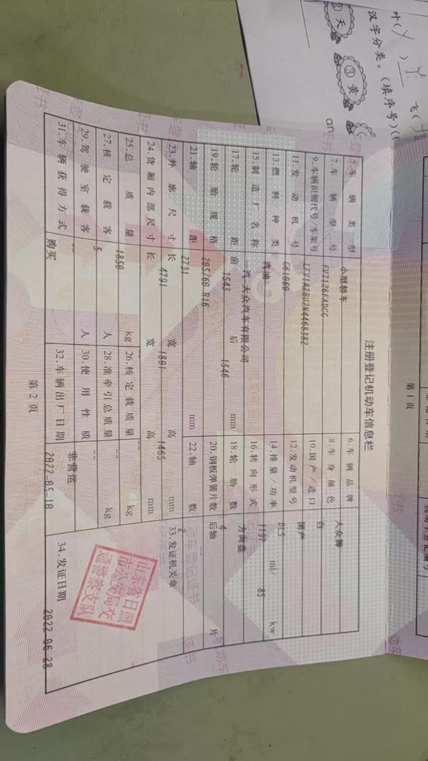 初次登记日期 2022-06-28 车辆名称 大众 速腾
