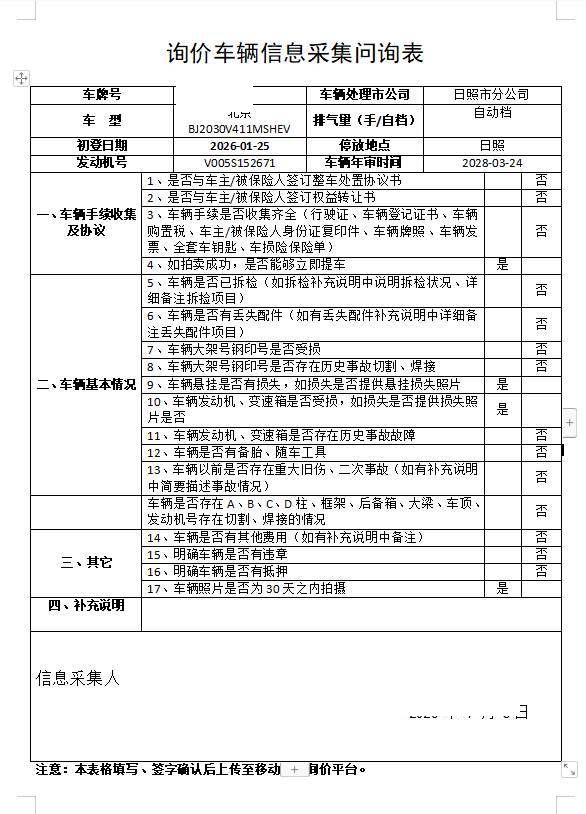 车架号是否受损 使用性质 非营运