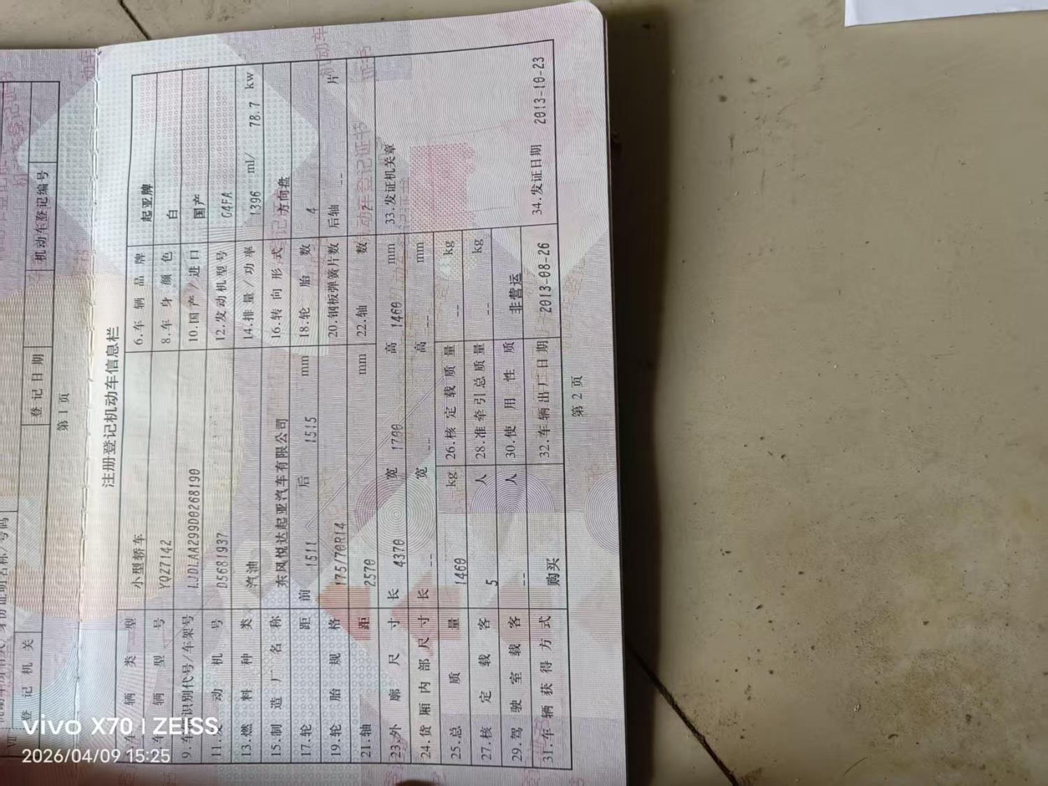 初次登记日期 2013-10-23 车辆名称 起亚牌