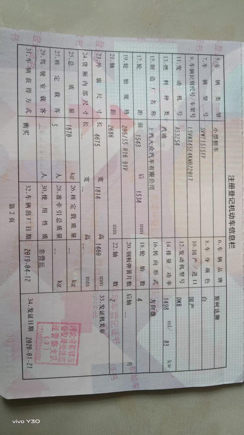 初次登记日期 2020-01-21 车辆名称 斯柯达