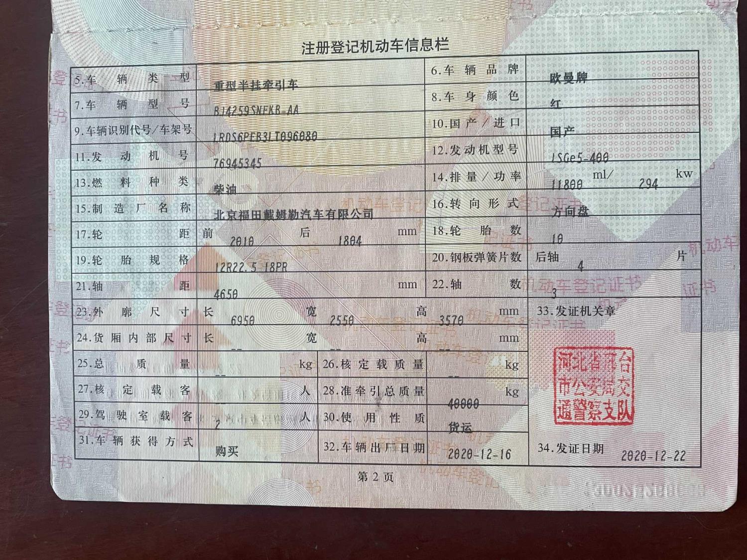初次登记日期 2020-12-22 车辆名称 解放牌