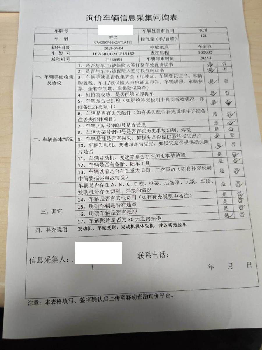 车牌号 冀****** 品牌 解放