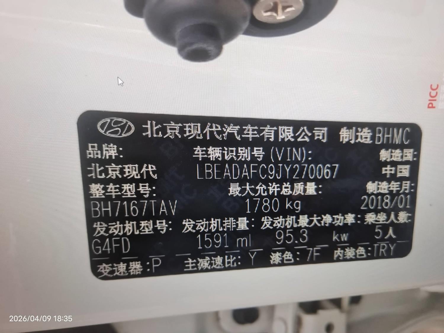 初次登记日期 2018-04-03 车辆名称 现代 领动