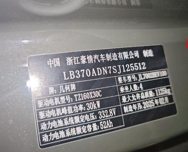 初次登记日期 2025-02-24 车辆名称 吉利银河 熊猫
