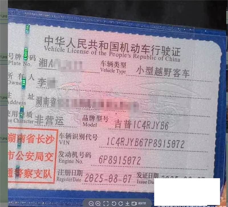 车牌号 湘****** 品牌 吉普