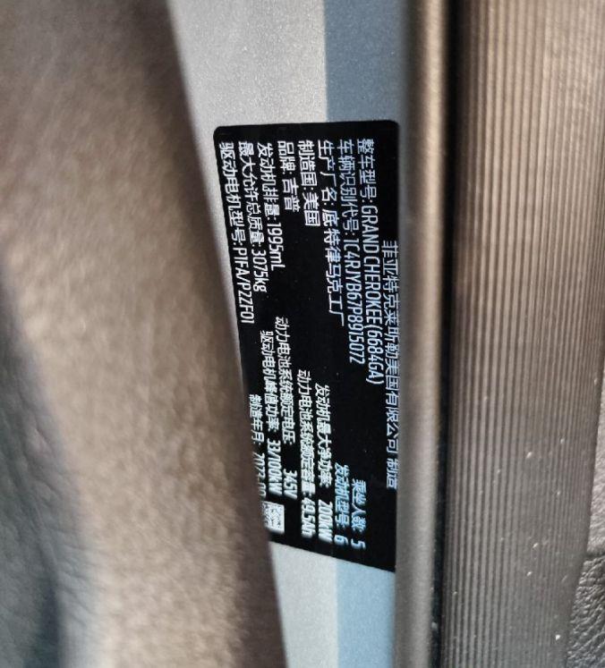 初次登记日期 2025-08-07 车辆名称 Jeep 大切诺基4xe(进口)
