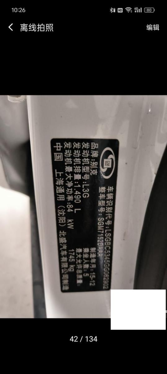 初次登记日期 2016-01-20 车辆名称 别克 威朗