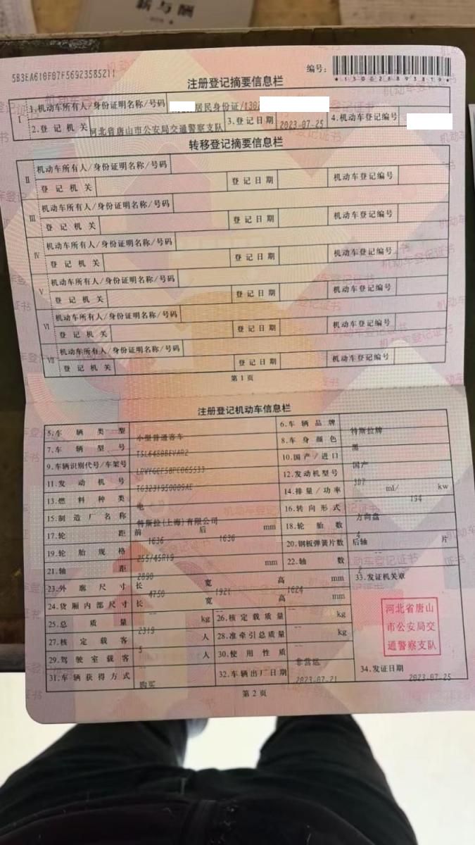 初次登记日期 2023-07-25 车辆名称 特斯拉 Model