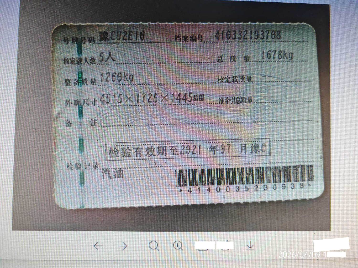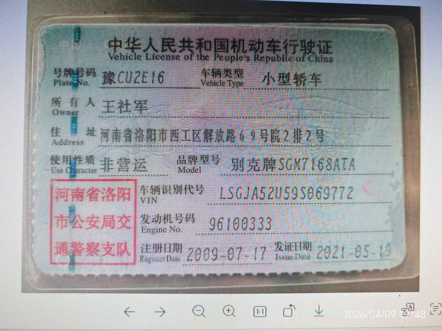 车牌号 豫****** 品牌 别克